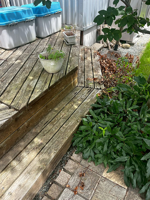 近年、木製ウッドデッキが経年劣化により腐食し、危険な状態になるケースが多く見られます。