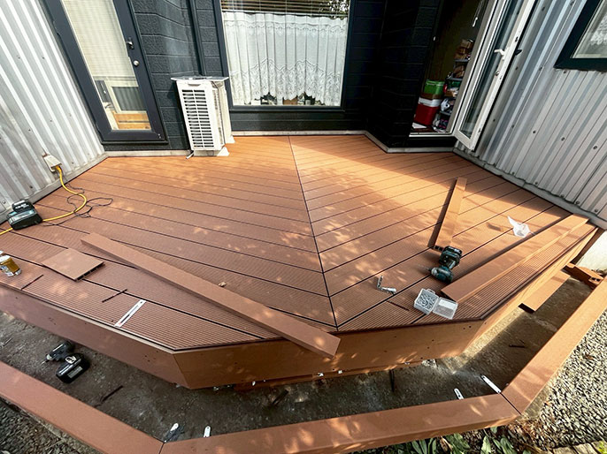 当社では、見た目の美しさと安全性を兼ね備えた樹脂製ウッドデッキの施工を多数手がけております。